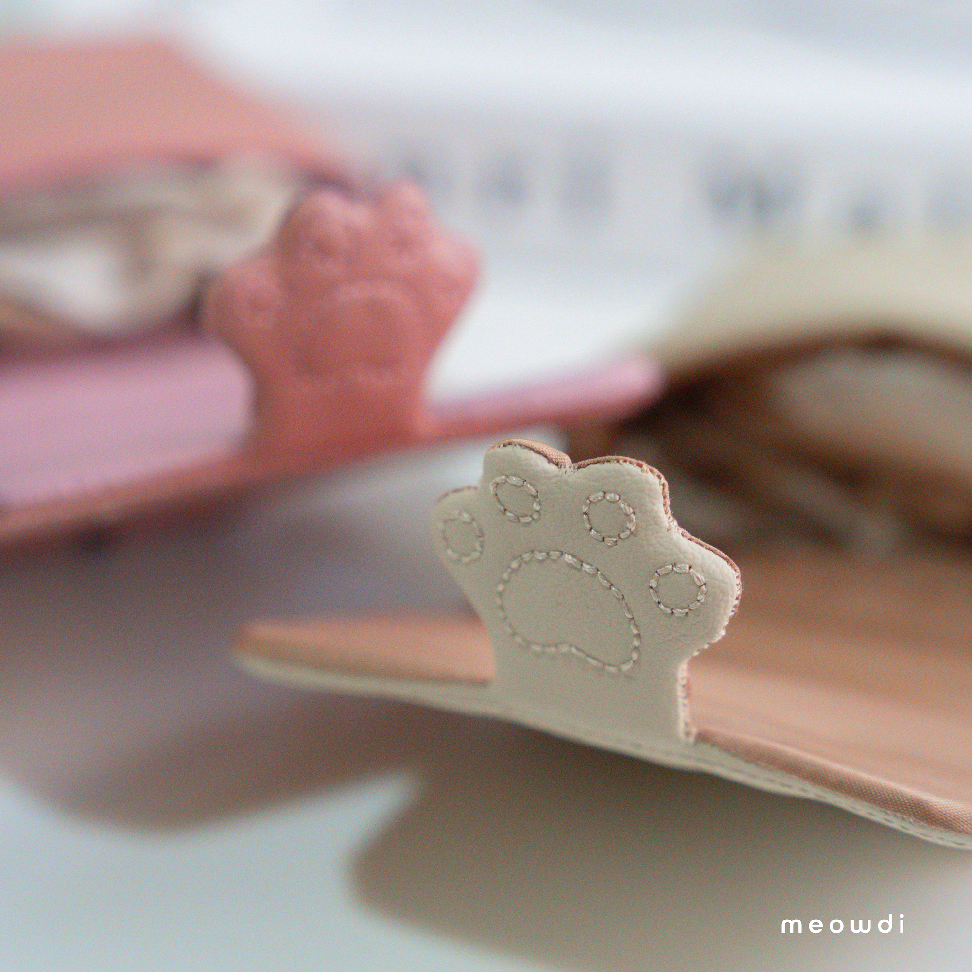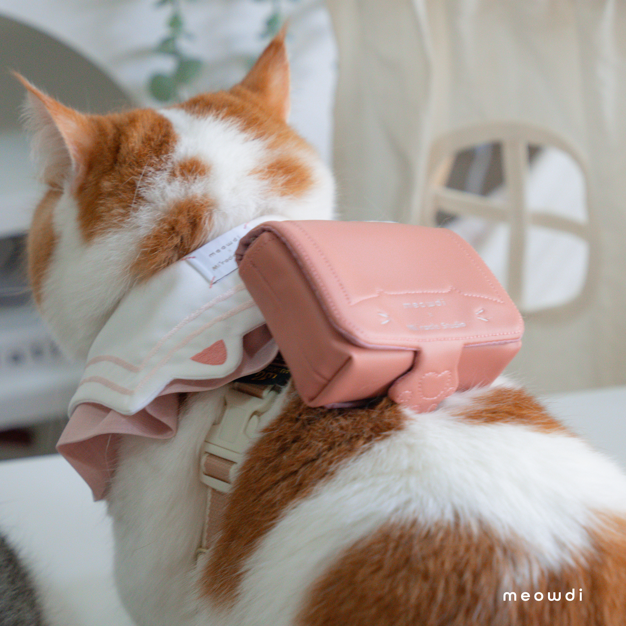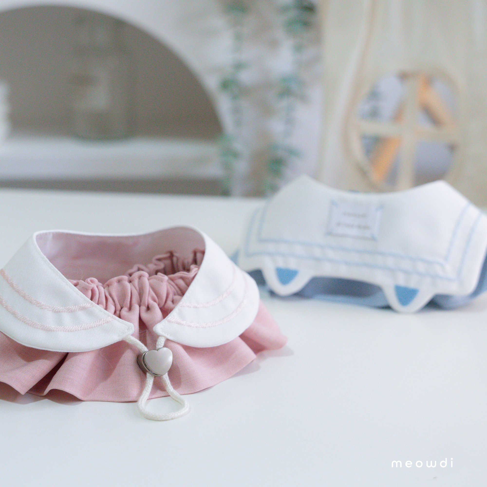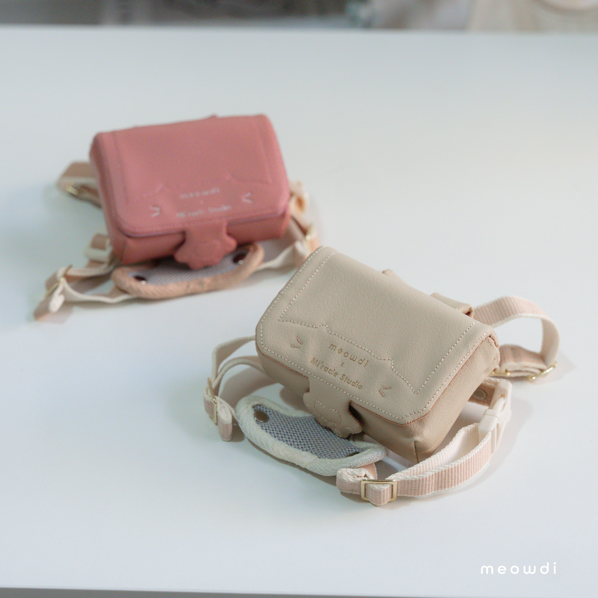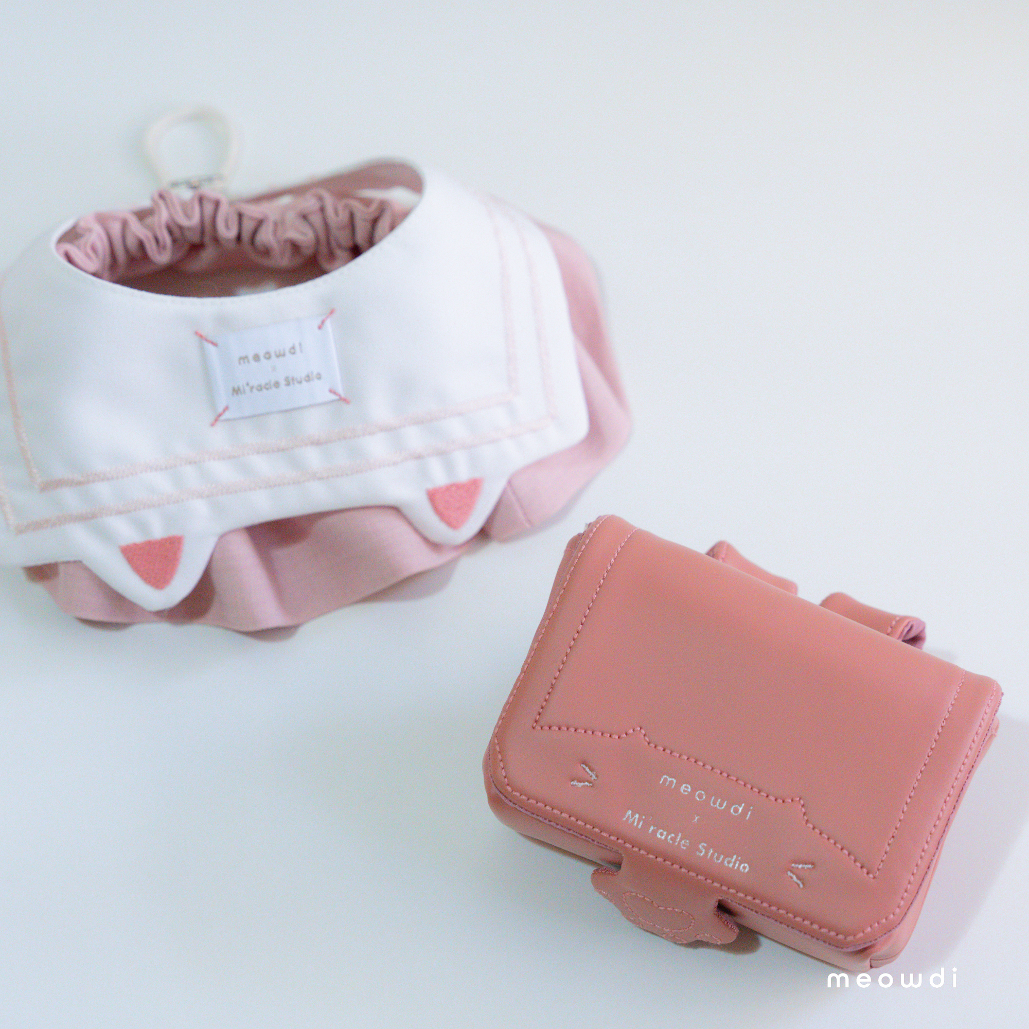 【 材質說明 】 斜紋西裝布、霧銀愛心釦 、粉雙色織紋西裝布、粉色滑面貓抓皮、黑銀色磁釦、矽膠扣條