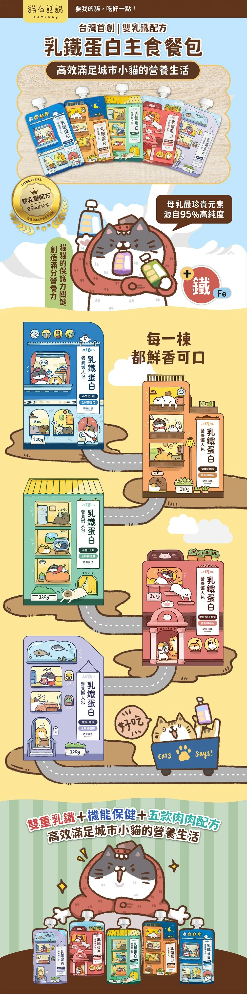 ✔️ 精選5款頂級肉源口味與機能配方,每一棟房都能穩穩守護城市小貓高效的營養生活